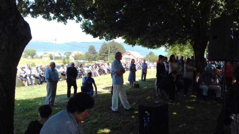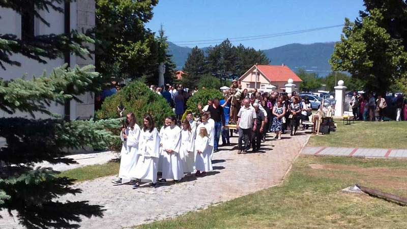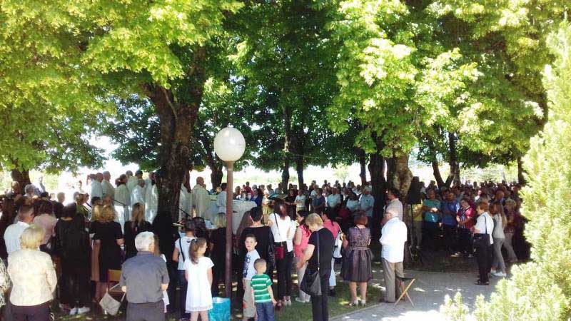 biskup gospićko-senjski, uz suslavlje brojnih svećenika. Dvorište župne crkve