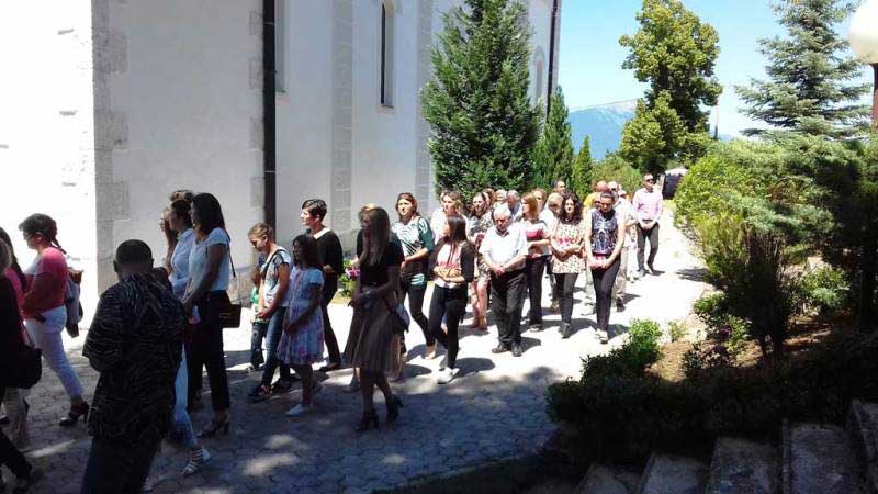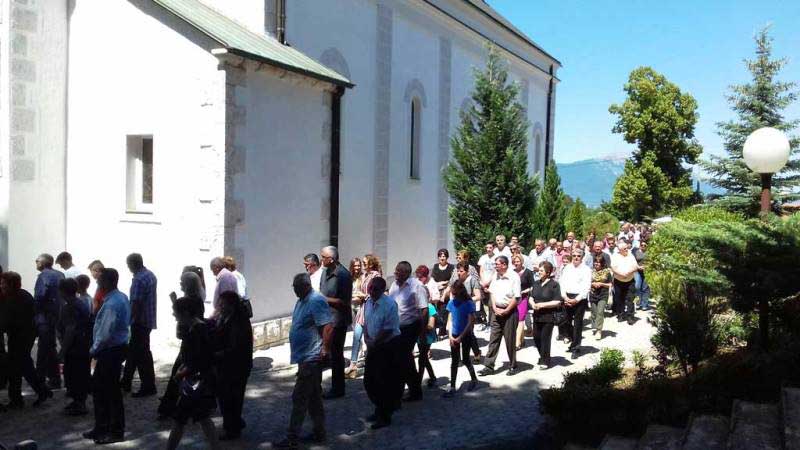 procesija sa svečevim kipom kroz dvorište župne crkve uz pjevanje Litanija svih