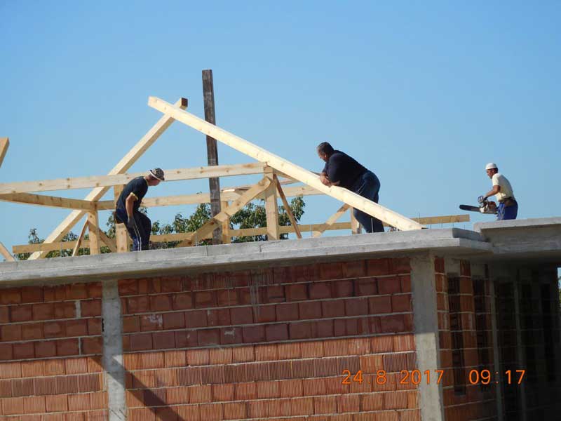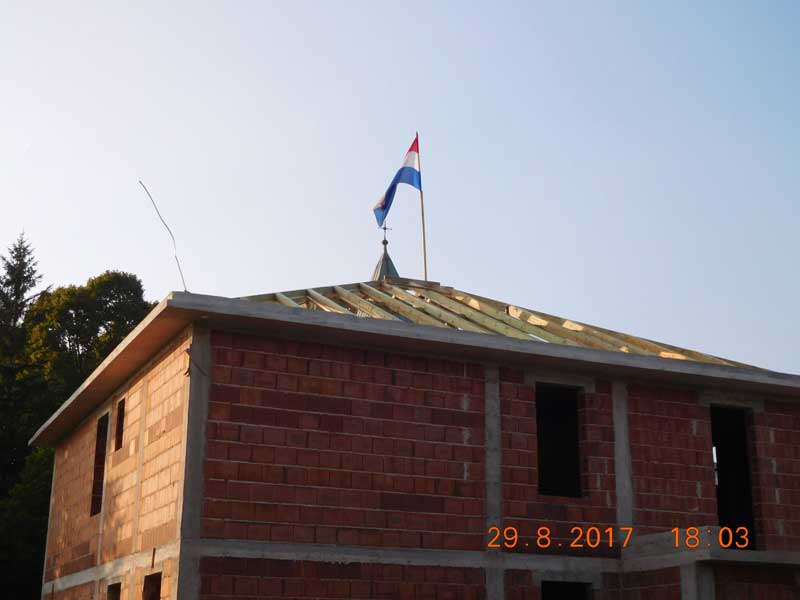 24. Kolovoza 2014. počela se slagati konstrukcija krovišta. Postavljena je stolica a zatim atike ili kosnici i rožnici.