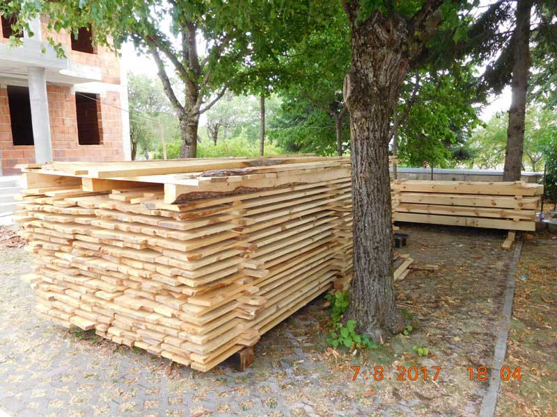 Pristigla je građa za krov, složena je da se prosuši.