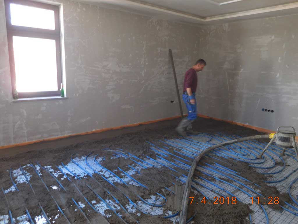 3. Nakon postavljanja cijevi za podno grijanje bilo je potrebno odmah izliti estrih na podove u cijeloj kući.