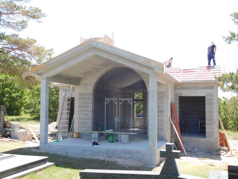 Od posljednjeg javljanja na kapelici je urađeno slijedeće: izliveni su betonsko armirani vijenci na kapelici, zatim je izlivena kosa betonska ploča preko koje je postavljena hidro izolacija i letve za pokrovnu ciglu. Limarija na kapelici je postavljena a to je donacija od Ilije Beljana + Stipe koji živi i radi u Ivanić Gradu. Pokrovna kupa je postavljena a preslica za zvono je donacija od izvođača radova. Trenutno se u kapelici razvodi elektro instalacija i instalacija za razglas koju gratis izvodi i materijal daruje Antić Ćurić +Mate – Vrslić.