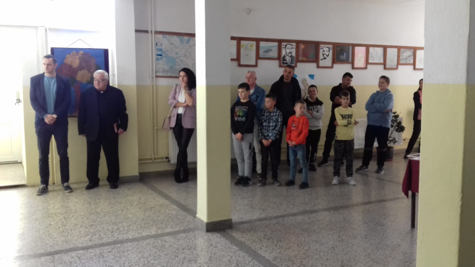 U školskom holu priređeni su izložbeni panoi s učeničkim radovima, ali