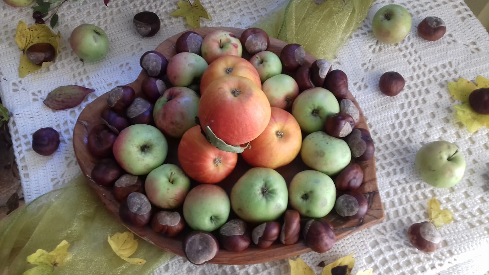 i stolovi puni bogatih i mirisnih krušnih proizvoda i plodova, koje su skupa sa