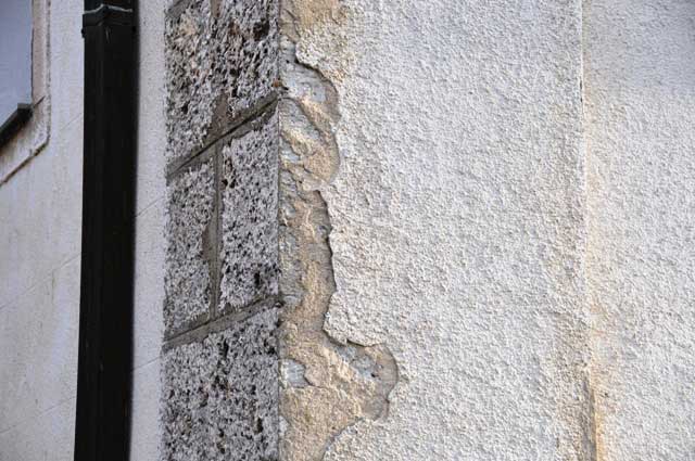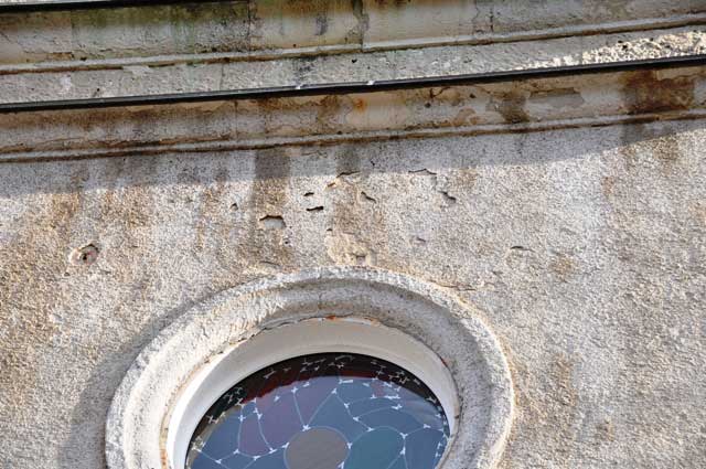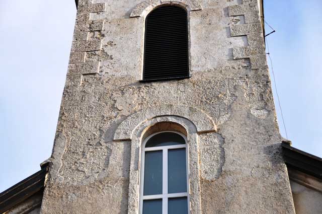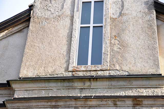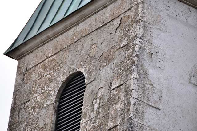 Na pročelju crkve su vidljiva velika oštećenja na mortu kojim je zabačen kamen na pročelju crkve. /vidi slike/