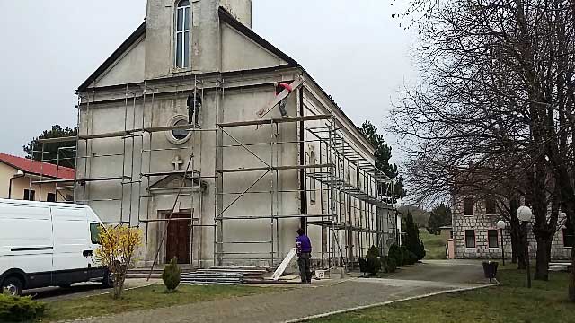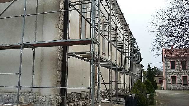 Skela se već postavlja oko cijele crkve stoga ćemo uskoro morati donijeti najsvrhovitiji i najbolji način obnove i rada na preostaloj fasadi župne crkve.